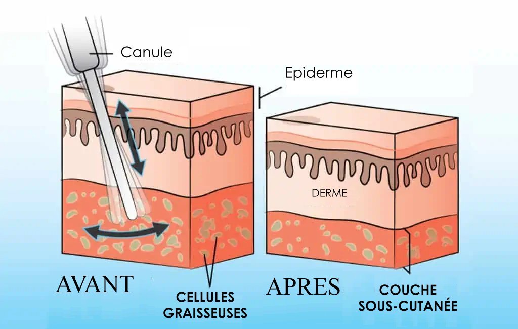 Durante una procedura di liposuzione, la cannula si collega a un circuito a pressione negativa chiuso. Il chirurgo prende di mira gli adipociti da eliminare. Può creare una rete di tunnel, rispettando i nervi e i vasi sanguigni. Una volta che questa rete è a posto, procede a succhiare il grasso in eccesso usando la cannula.